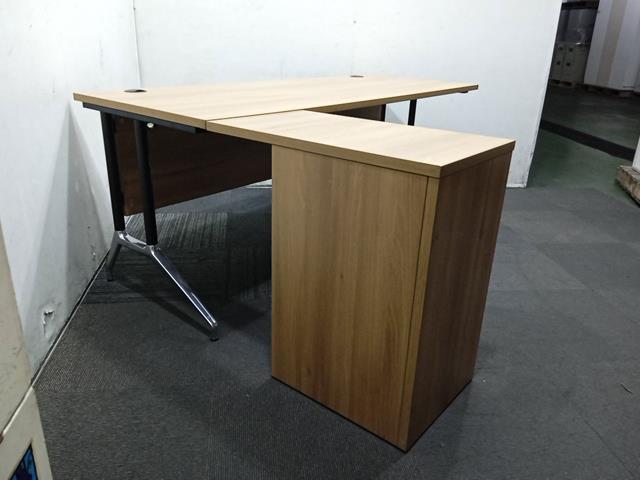 A desk with an L-shaped top plate. There is a lot of space, so you can put down a computer, create documents, and do more. There is a lot of space, so you can put down a computer, create documents, and do more. The large workspace reduces stress during desk work and allows you to work comfortably