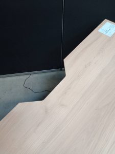 หน้าท็อปโต๊ะรอบนี้ มีเว้าไว้ให้สายไฟได้ลอด